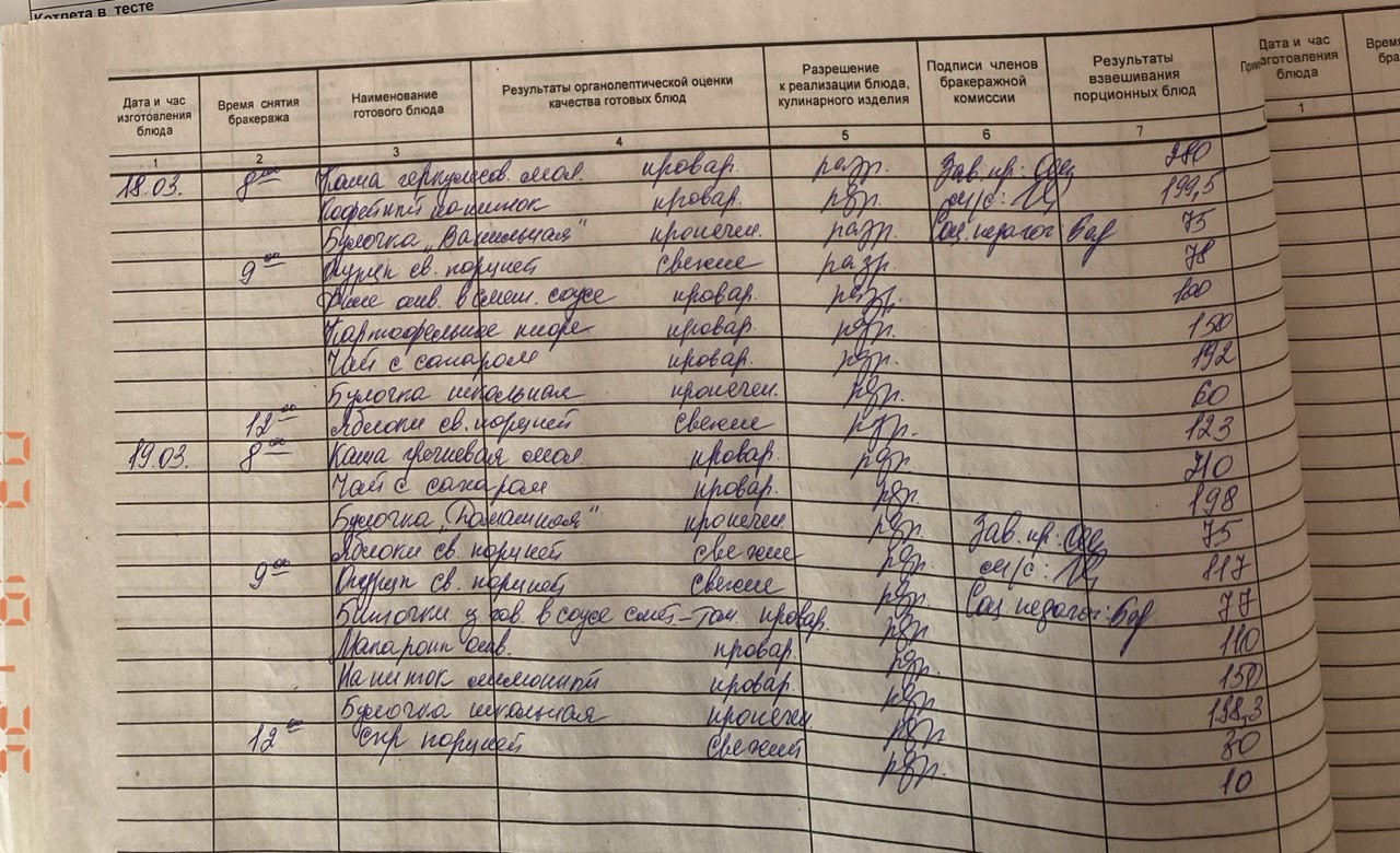 Бракеражный журнал 19.03.2025 Прикрепления: