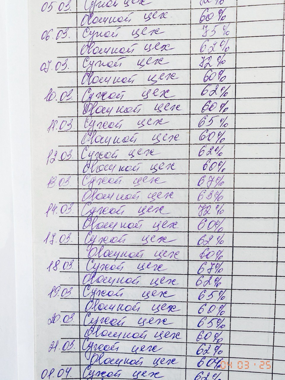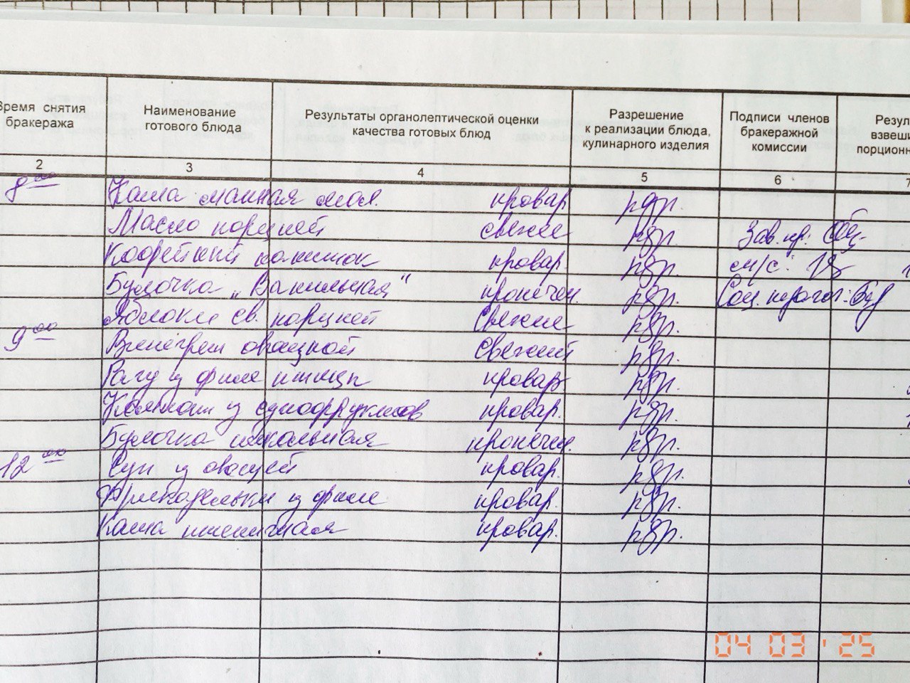 Бракеражный журнал 03.04.2025