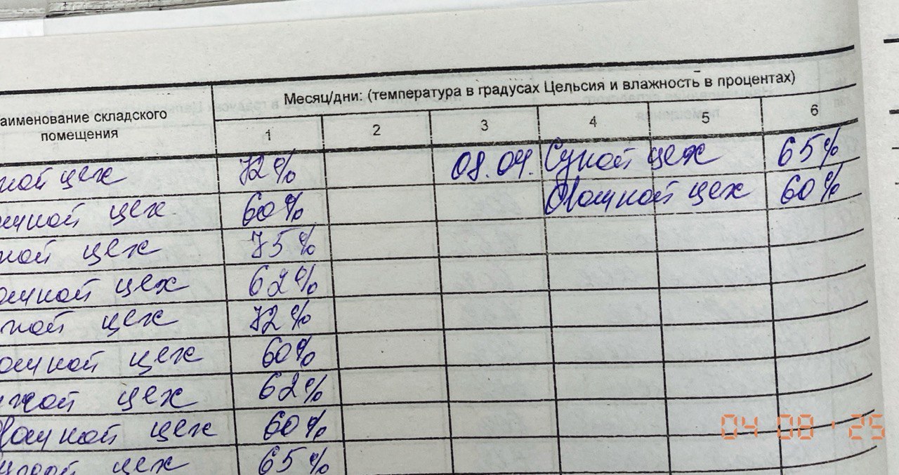 Журнал учета температурного режима холодильного оборудования за 8 апреля 2025 Прикрепления: