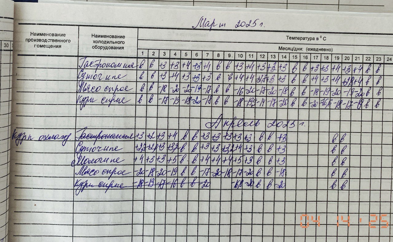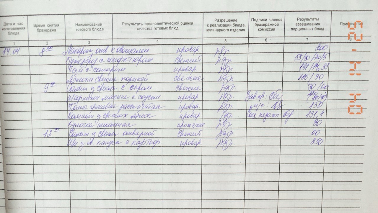 Бракеражный журнал 14.04.2025 Прикрепления: