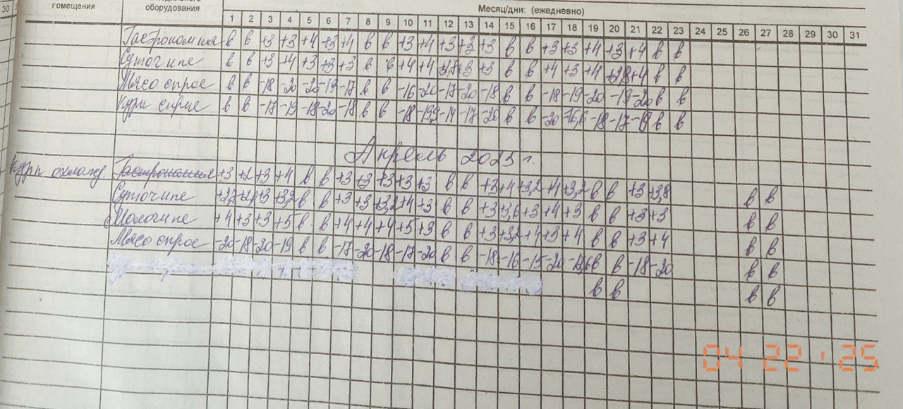 Журнал учета температурного режима холодильного оборудования за 22 апреля Прикрепления: