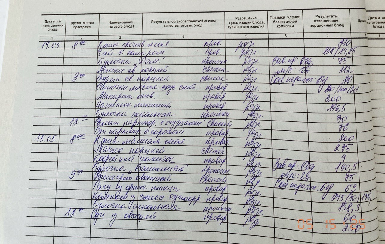 » Бракеражный журнал 15.05.2025